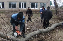 "Язгы изгелек атнасы" нда "Яшел десант" операциясе кысаларында мәктәп территориясендәге корыган куаклар киселде.