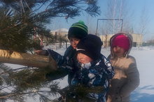 Кышкы салкын көннәрдә башлангыч сыйныф укучылары кошларга ярдәм итүне дәвам итә.