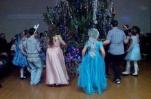 Снова праздник мы встречаем,С Новым годом поздравляем!Возле ёлочки пушистойВновь заводим хоровод.Елка рада, что на праздникОчутилась у ребят,Что игрушки и хлопушки