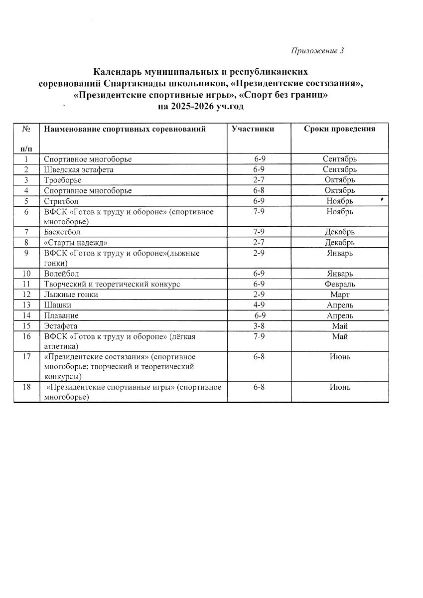 Календарный план спортивных мероприятий МБОУ "Лагерская ООШ" на 2025-2026 учебный год