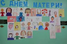 Ученики 4б класса организовали выставку рисунков ко дню матери.