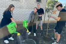 Учащиеся 10 «Б» класса (классный руководитель - Баляева Е. Е.) совершили прекрасный и символичный поступок - заложили основу будущего пришкольного сада, высадив грушевые деревья.