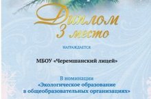 МБОУ "Черемшанский лицей" участвовал в республиканском конкурсе "ЭКОлидер". И был награжден дипломом за 3 место, в номинации "Экологическое образование в общеобразовательных организациях". Поздравляем!