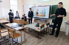 Сулимов Е.А. с обучающимся 8 класса продемонстрировали часть задания из соревнований по