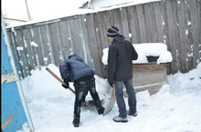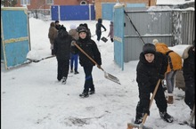После ночной метели и обильного снегопада тимуровцы поспешили на помощь к ветерану труда Шараповой Ф.С.
