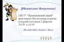 Приглашаем выпускников на вечер Встречи 2 февраля 2013г. в 16.00 в лицей!