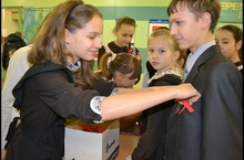 Сегодня, в день борьбы против СПИДа, с утра провели акцию «Красная ленточка», каждому учащемуся с 1-по 9 класса были вручены красные ленточки, которые являются символом акции, посвященной борьбе против СПИДа и ВИЧ -инфекции, участниками SMS был проведен флешмоб.