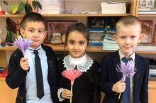 Гинванова Д.Г. с учащимися 1а класса сделали праздничные цветочки для своих мамочек и бабушек.