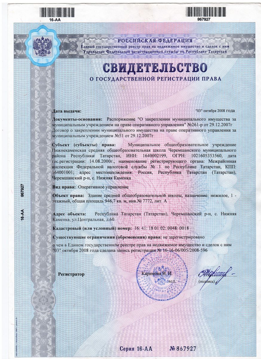 Адрес: 423114, Республика Татарстан, Черемшанский район, д. Нижняя Каменка, ул. Центральная, д.60