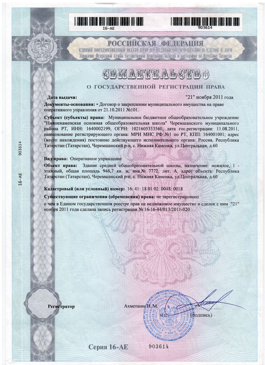 Муниципальное бюджетное общеобразовательное учреждение «Нижнекаменская основная общеобразовательная школа» Черемшанского муниципального района Республики Татарстан