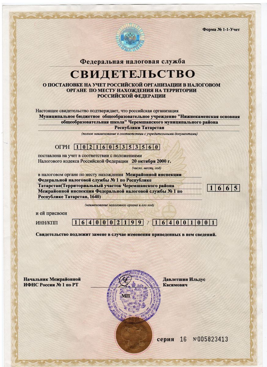 Муниципальное бюджетное общеобразовательное учреждение «Нижнекаменская основная общеобразовательная школа» Черемшанского муниципального района Республики Татарстан