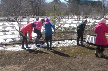19 апреля в школе с учащимися организовали субботник по очистке территории школы.