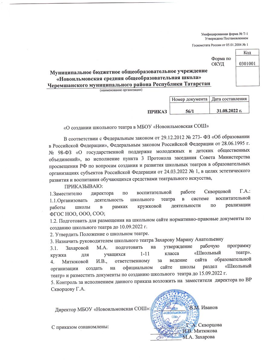 Муниципальное бюджетное общеобразовательное учреждение «Новоильмовская основная общеобразовательная школа» Черемшанского муниципального района Республики Татарстан