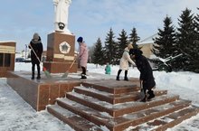 Тимуровский отряд 6 "б" класса очистил снег у памятника Неизвестного солдата.