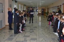 Сегодня ученики младших классов встретились с инспектором, который объяснил ребятишкам правила поведения на дороге, в автомобиле и при езде на велосипеде.
