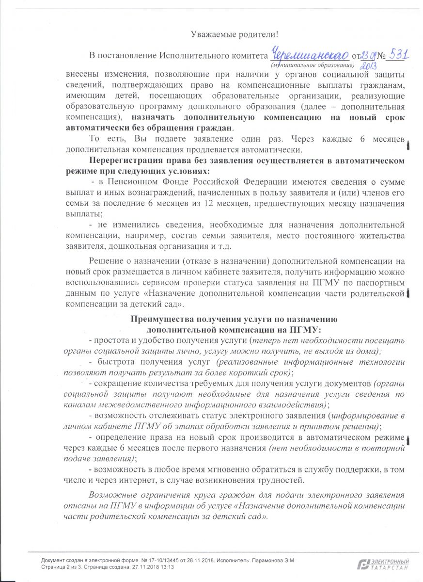 К сведению родителей 07.12.2018