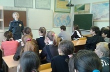 в рамках акции "Сообщи, где торгуют смертью" прочитала лекцию перед учащимися школы.
