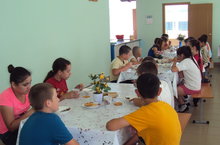 Ашханәдә үзенең тәмле ашлары,хуш исле ризыклары белән шатландырып торучы пешекчебез,Зарипова Миләүшә Рәшит кызы балаларны елмаеп каршы ала.