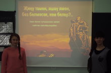 10-11сыйныфларда Минхәирова Резедә Байрак кызы "Сугыш елларында язучыларыбыз" дигән темага сыйныф сәгате уздырды.