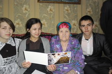 Бөек Җиңүнең 70 еллыгын каршылап... Балалар Минхәят әбигә президент котлавын җиткерделәр. 24.04.2015