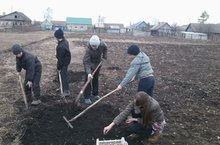 “ Язгы игелекләр атнасы- изге эшләр эстафетасы” дигән акциягә кушылып без дә сугыш Һәм хезмәт ветераны Гильметдин бабай Галиәкбәровка бакчасын йомшартып, суган утыртып кайттык.