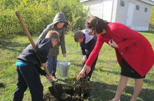 Учителя вместе с учащимися школы озеленяли пришкольный участок.