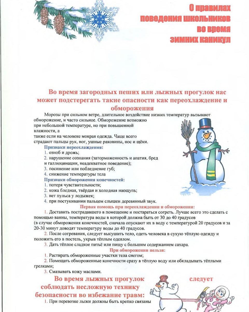О правилах поведения школьников во время зимних каникул/Кышкы каникуллар вакытында мәктәп укучыларының үз-үзләрен тоту кагыйдәләре турында