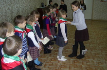 Учащихся 2 класса приняли в ряды Детской Общественной Организации Союз Наследников Татарстан. Юные следопыты произнесли торжественное обещание, правила следопыт. Вожатые 6 класса повязали следопытам галстуки и вручили дипломы.