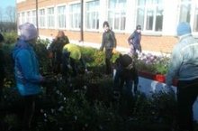 Сегодня учащиеся приняли участие в среднике по уборке прилегающей к школе территории.