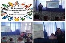 В рамках празднования Международного дня родного языка в подготовительной к школе группе прошёл тематический день «Родной язык – наше богатство». Воспитатель татарского языка Ахметова Гулия Гумеровна рассказала детям о том, что у каждого народа есть свои особенности, традиции, культура и язык, познакомила детей с понятием «родной язык», объяснила, почему его называют родным, рассказала о значении родного языка в жизни каждого человека. Дети приняли участие в мультпараде по народным сказкам, сочиняли и отгадывали загадки, играли в русские и татарские народные игры "Ручеёк", "Колечко", "Тюбетейка" , участвовали в викторине.