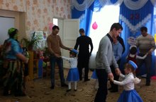 Воспитатели старшей группы подготовили и провели объёмную и интересную программу мероприятия, посвящённного Дню защитников Отечества. Дети поздравили своих пап, дедушек с 23 февраля. На праздник пришла Кикимора со своим внуком, который никак не был готов служить в Армиии. Но ребята с удовольствием помогали выполнять все задания. Гости праздника приняли активное участие, что особо радовало детей. Праздник удался на славу!