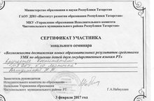 Воспитатели Валиуллина Н. Н. и Ананьева С.И. приняли участие в выставке игровых пособий и получили сертификаты зонального семинара – практикума по теме «Создание языковой среды в ДОО в рамках реализации УМК по обучению детей двум государственным языкам через использование игровых технологий» в рамках работы муниципального ресурсного центра «Чишмә» с целью обобщения и распространения передового педагогического опыта по данной теме, на базе МБДОУ «Детский сад №26 комбинированного вида» «АБВГДейка»