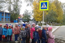 Закрепить правила поведения на улицах города, соблюдая правила дорожного движения, воспитанники ДОУ вместе со своими педагогами организовали целевую прогулку к проезжей части. Там, закрепили знания дорожного движения, поведение пешеходов при ходьбе по тротуару и через проезжую часть.