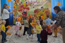 Сегодня в младших группе «Почемучки» и "Затейники" прошел осенний праздник «Здравствуй, осень золотая!». У нас в музыкальном зале царила теплая, доброжелательная атмосфера. К ребятам приходил в гости.. Они поиграли с детьми в игру «Кто быстрее соберет грибочки». На утреннике дети рассказывали стихи об осени, пели песни, отгадывали загадки, танцевали танец «На полянке зайки танцевали», танец «Грибочки». А затем к ним в гости пришла волшебница Осень. Вместе с хозяйкой праздника дети играли в игры: «Солнышко и дождик».