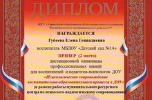 Педагог Е. Г. Губееваны «Мәктәпкәчә белем бирү учреждениеләрендә тәрбия - белем бирү процессына психологик ярдәм күрсәтү» мәктәпкәчә белем бирү учреждениясенең тәрбиячеләре һәм педагог-психологлары өчен Google онлайн-сервисын кулланып (психологик-педагогик ярдәм күрсәтү буенча муниципаль ресурс үзәге эше кысаларында) һөнәри белемнәр буенча дистанцион олимпиадада призлы урын яулаган педагог Е. Г. Губееваны котлыйбыз).
