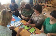 Еллык эш планын 2017-2018 ел. тормышка ашыру кысаларында педагогларны профессиональ яктан үстерү максаты белән тәрбияче Михайлова Н.А. "Кәгазь белән айрис фолдинг техникасында эш итү" дигән мастер - класс үткәрде. Мастер классның максаты: педагогларны яңа бизәү - кулланма сәнгатенә өйрәтү.