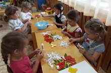 Табигатьтә хезмәт балаланы тәрбияли,кызыксыну уята,үсемлекләр тормышына кайгыртучанлык ,җаваплылык өсти.Менә икенче кечкенәләр төркеме балалары да бик теләп тәрбияче кушканны үтиләр.