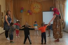 Для воспитанников группы раннего возраста было проведено развлечение "В гости к солнышку". Цель создание положительного эмоционального настроя, посредством театрализованного представления и игровых действий