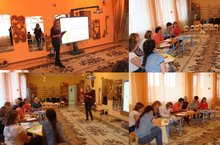 Тәрбияче Выборнова Е.Л. "Рус халык уеннары ярдәмендә балаларда сәламәт яшәү рәвеше тәрбияләү" дигән мастер- класс күрсәтте.