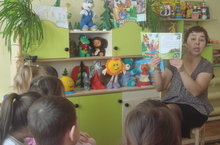 Мы посетили творческую лабораторию воспитателя средней группы Хузиной Люции Равильевны. Занимательное чтение сказки "Лисичка со скалочкой" в салоне художественного чтения.