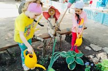 Лето – это прекрасная пора, когда дети могут в свое удовольствие играть, бегать, загорать, наблюдать за работой взрослых на огороде, в цветнике. Дети старшей группы «Теремок» с удовольствием помогают поливать цветы на клумбах, полоть грядки от сорняков, собирать скошенную траву на участке, выкапывать урожай. Столько вокруг удивительного и неизведанного. Все хочется рассмотреть поближе, а ещё лучше сделать что-то своими руками и посмотреть на результат своей работы./ Җәй-балалар рәхәтләнеп уйный, йөгерә, кояш баета, бакчада, Чәчәк бакчасында өлкәннәрнең эшен күзәтә ала торган искиткеч вакыт. «Теремок» өлкән төркеме балалары чәчәк түтәлләренә чәчәкләр сибәргә, чүп үләннәренең түшәмнәрен сөртергә, участокта чабып алынган үлән җыярга, уңыш казырга ярдәм итәләр. Гаҗәп һәм билгесезлек тирәсендә шулкадәр күп. Барысын да якынрак карарга, ә тагын да яхшырак үз кулларың белән нәрсәдер эшләргә һәм үз эшеңнең нәтиҗәсен карарга телим.