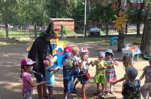 Наш город - старинный, и детям, конечно же было интересно прогуляться по знакомым улицам, полюбоваться достопримечательностями, сфотографироваться возле них. В роли экскурсовода выступил Шурале - герой сказки татарского поэта Г. Тукая, он познакомил детей с историей родного района и поиграл с ними в народные игры "Ручеек"и "Шурале"