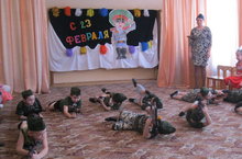 в рамках празднования 23 февраля в детском саду прошла "Зарничка" с соревнованиями, песнями, танцами, стихами и песнями