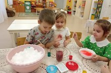 Ребята старшей группы, под руководством педагога - Гульнар Миннулловны, сегодня провели опыты со снегом, и льдом. Они завороженно наблюдали за тем, как снег и лед окрашивался в разные цвета, как в тепле происходила трансформация снега и льда в воду.