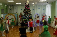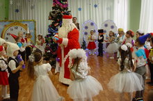 Дети зажигали елку , читали стмхи вместе и пели песни. В гости к детям вбежал Заяц - мальчики с ним танцеввали, приходил Мишка -топтыжка - дети играли с ним в игру "Мишка ходит в гости" и приходила Снегурочка - девочки исполнили танец снежинок. В заершение утренника снегурочка и дети исполнили танец со снежинкамм и игру со снежинками. Снегурочка не забыла , принесла с елкой она к детям пришла. А на ветках , а на ветках не игрушки, а конфетки.