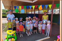 Лето– время для увлекательных игр и забав. В группах Кроха и Кораблик развлечение с веселой героиней Бусинкой, она в интересной форме провела с ребятами игры с мячами шариками и мыльными пузырями. У детей было радостное и праздничное настроение.