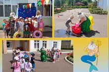 В жаркий летний день в детском саду прошёл праздник Нептуна. "День Нептуна" - это праздник лета, воды и веселья, где дети смогли показать свой задор и умения. Самим яркими моментом праздника было появление главного героя Нептуна. Он приходил не один, а с Водяным. Водяной привлёк внимание своим спортивным задором, дети с радостью приняли участие в играх и эстафетах. Праздник принёс детям массу положительных эмоций, а так же способствовал закаливанию/ Эссе җәйге көнне балалар бакчасында Нептун бәйрәме узды. "Нептун көне" - җәй бәйрәме, су һәм күңел ачу бәйрәме.Бәйрәмдә балалар үзләренең дәртләрен һәм осталыкларын күрсәтә алды. Бәйрәмнең иң якты мизгеле Нептунның герое пәйда булуы. Ул үзе генә түгел, ә су иясе белән килде. Балалар рәхәтләнеп уеннарда һәм эстафетада катнаштылар. Бәйрәм балаларга бик күп уңай хис-кичерешләр алып килде, шулай ук чыныгуга да ярдәм итте.