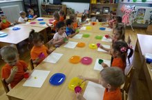 Вак моториканы, кул бармакларының координацияләнүен үстерү максатыннан "Карапуз" төркеменең иртә үсеш төркемендә "Без уйнадык. без уйнадык - бармакларны киңәйттек" - дигән күңелле күңел ачу үткәрелде.