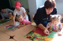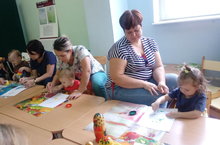 Содержательно и увлекательно проходит совместная деятельность взрослых и детей в группе кратковременного пребывания "Карапуз". Малыши учились скатывать и расплющивать маленькие шарики из пластилина.