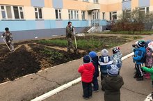 С целью обогащения и активизации словаря детей по теме "Профессии", воспитанники из группы "Кроха" во время прогулки наблюдали за трудом дворника, который занимался уборкой урожая с приусадебного участка детского сада. Дети внимательно наблюдали за работой, активно обсуждали и вспоминали ,как в течение летнего периода, часто посещали огород.